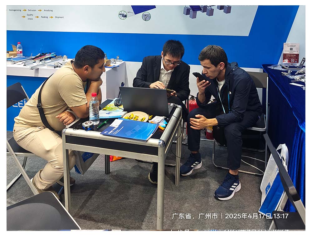展示エリアでは、Kingfeelsチームがお客様に囲まれていました。東アジアの購入者は、ブラケットの「砂漠防風砂設計」を高く評価していました。ヨーロッパのお客様は、AIによる傾斜最適化アルゴリズムに強い関心を示し、北欧の低照度地域での発電効率向上についてエンジニアと議論していました。