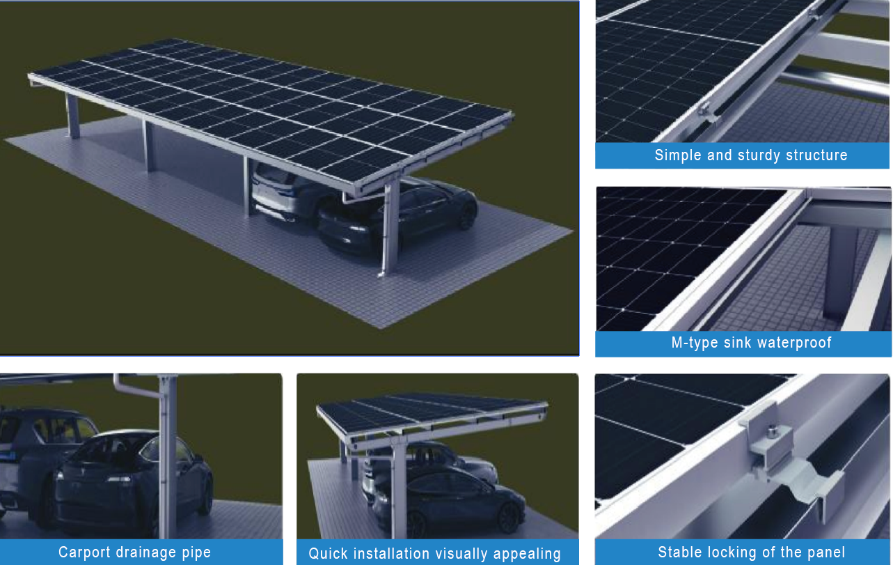 Kingfeels ソーラー アルミニウム構造カーポートは、住宅および商業目的に適しています。コンポーネントのほとんどは工場で高度に組み立てられているため、設置時間とコストが節約されます。