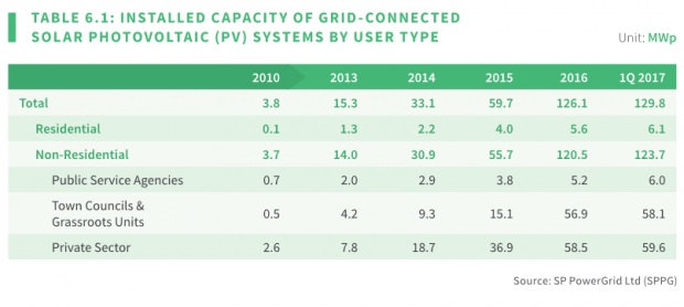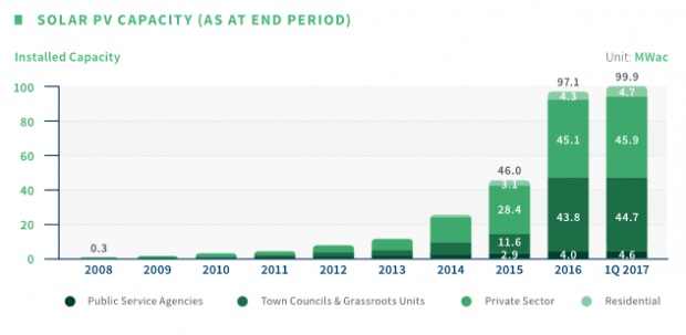 EMAによると、太陽光発電システムの大幅な増加は、主に2016年第1四半期と今年第1四半期に995件の新規設置が行われたことが要因となっている。2017年第1四半期末現在、シンガポールには合計1,898件の太陽光発電システムが設置されている。