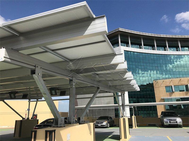 ・主材質にアルミを採用することで耐食性に優れ、ステンレスを採用することで強度を確保しました。ソーラーパーキングキャノピーの設計は、他のものよりも経済的なソリューションです。耐腐食性があります。